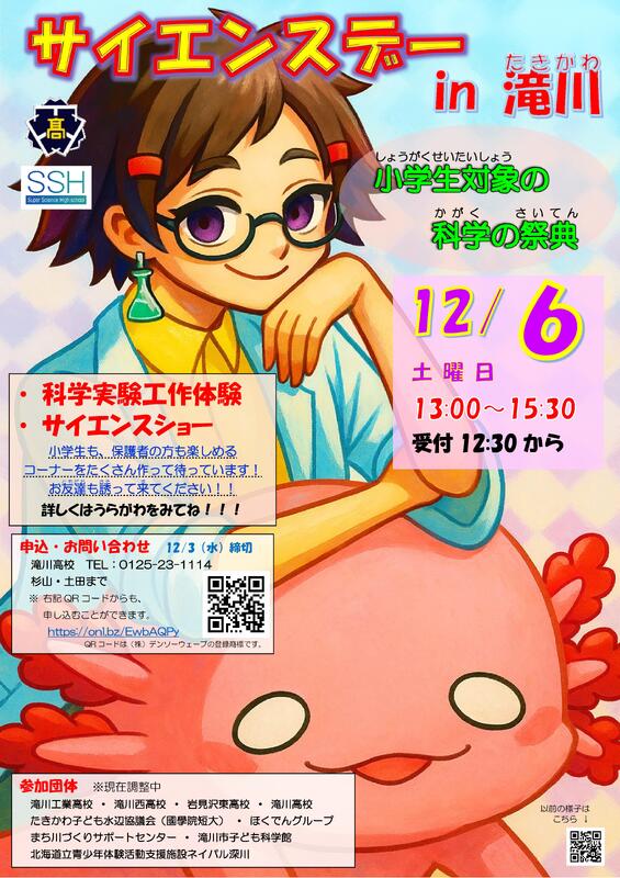 12/6(土)に小学生対象の科学の祭典「サイエンスデー in 滝川」を開催します。