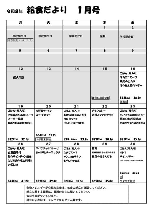 6月4日から中間考査があります。給食で栄養をつけてがんばってください。